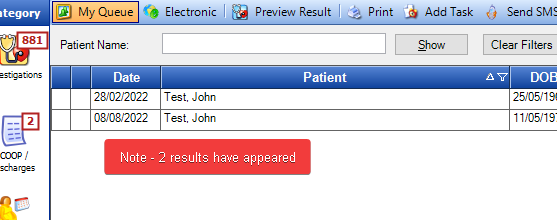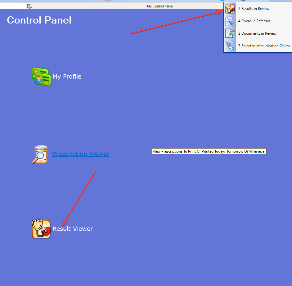 Another much more subtle difference is that if you open it via the control panel all investigation results in review are included while if you open via the notifications area you only see electronic results in review. Electronic results are those that come in via Healthlink but there can be other results, like manually entered results etc.