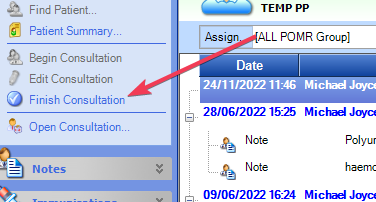 When you are finished seeing a patient there are two ways to close the file, either click the X in the top right hand corner and then click on OK or some of you might click on the left hand side “finish consultation” which finishes the consultation – making the top red but you still have to click the X on the top right although this time you don’t have to click on OK for save. Both these methods require two clicks.