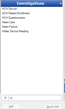 Here I have clicked on any of the investigations and typed H so now we see only the investigations starting with H