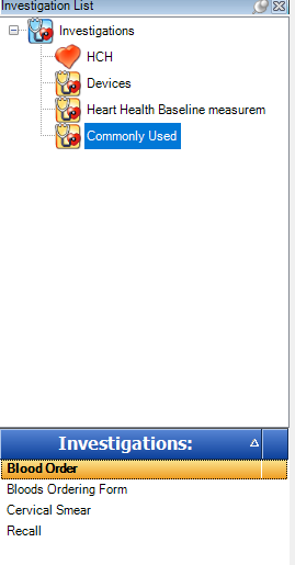 If I add cervical form and smear here, then back in the patient file, the commonly used investigation group now has these as well.
