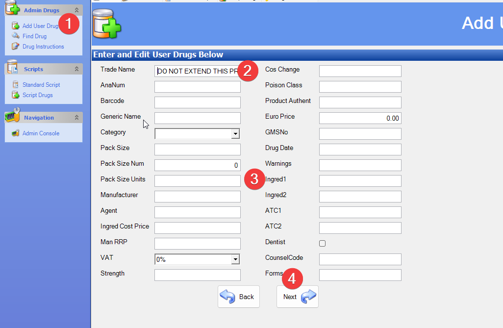 You could of course also add a new short cut to this effect. To do this again go to My Control Panel==>Admin Console==>Drugs
