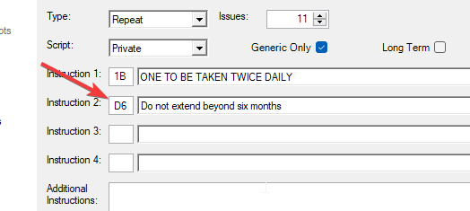 Now when prescribing you can add this extra instruction, type D6 into the small box (it is not case sensitive).