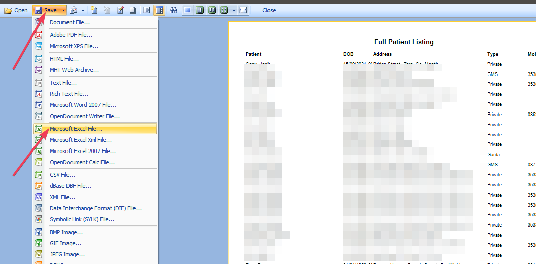 Click Print and the list of patients appears. From here you can print them or save them as an excel file etc.