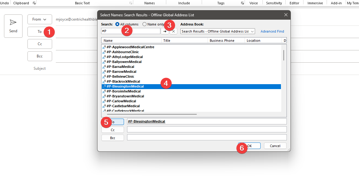 The e-mail is now ready to be sent to everyone in the practice. Note, this is centric health e-mail addresses only, another reason to have everyone use their centric e-mail addresses.