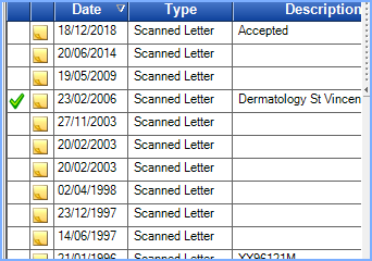 Additional information appears in a little envelope beside the document. It can be assigned for review by a particular doctor by option. If assigned and read by a doctor a green arrow is displayed by the document.