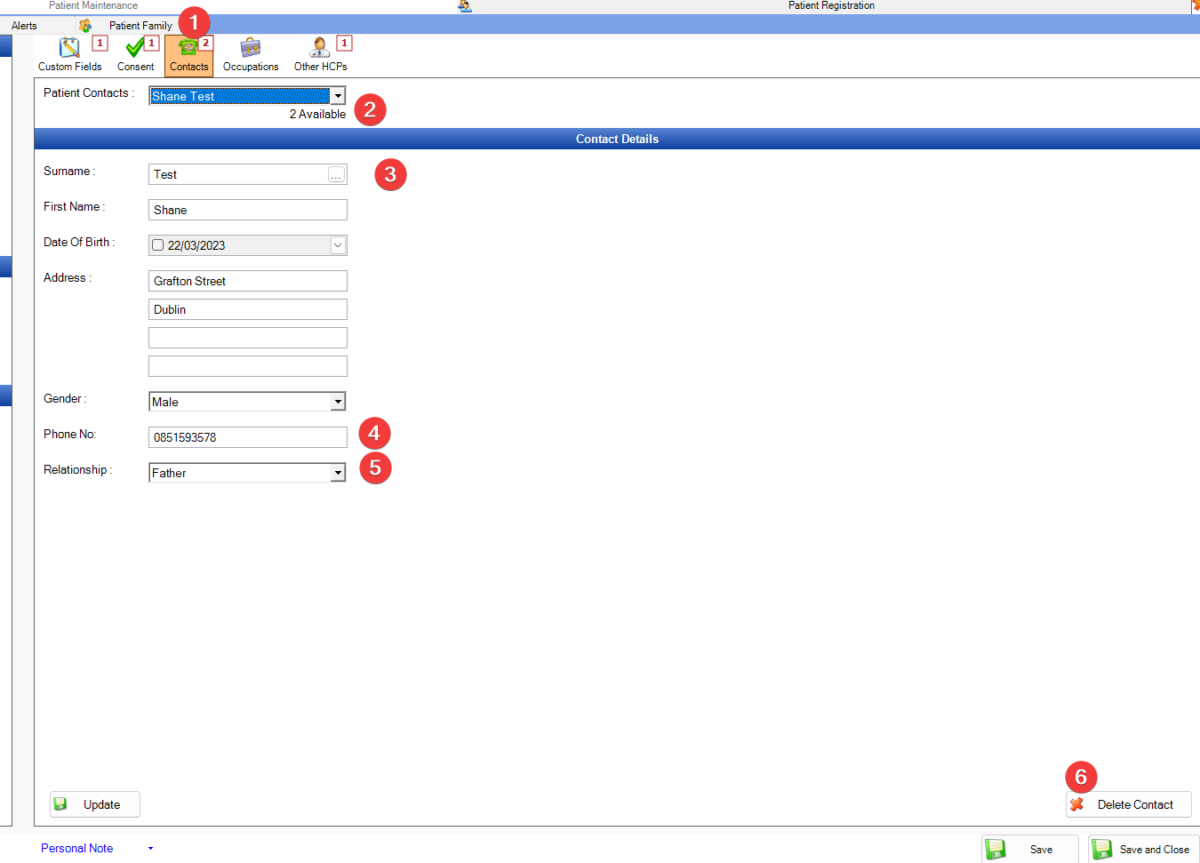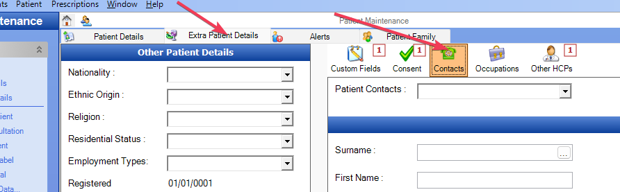 It is not immediately obvious where the best place to store contact details for patients is but there is in fact a tab dedicated to this function.