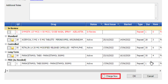 6: A charge now button has been added to the refill prescription dialogue