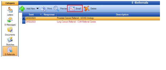 4: A new button, if your Socrates is set up for sending e-mail, can be used to e-mail healthlink referrals if necessary.