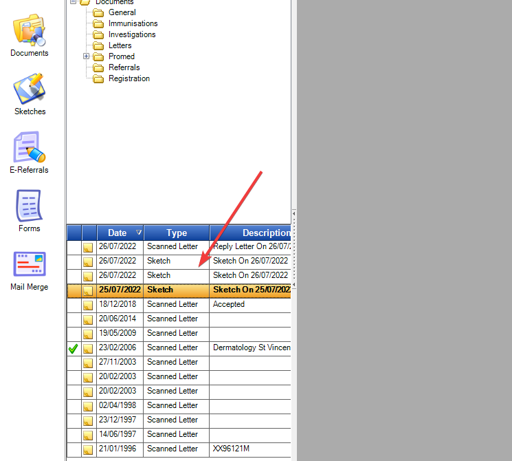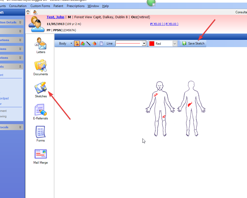 There is a rarely used feature in Socrates which has the potential to be very useful in some situations. That is to have a sketch diagram of say a face or a body on which we can mark and save sketch drawings of bruising or lacerations etc.