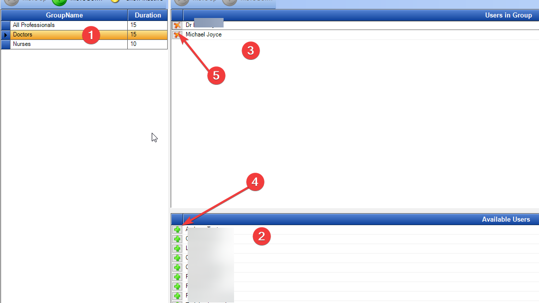 3: Add users to this area for them to be displayed as part of the Doctors Group