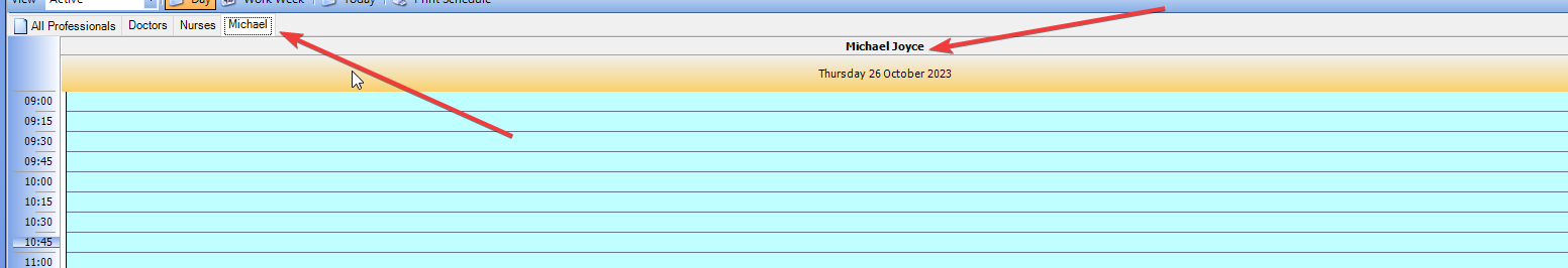While most patient attending information, particularly for clinicians, is accessed via the waiting room, in the appointments area you can if you wish display different groups of HCPs or even just yourself.