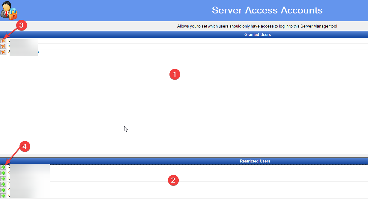 1: Any users in this section will be allowed log in to the Server manager, make sure there is always at least 1, if not 2 or 3 to be certain.