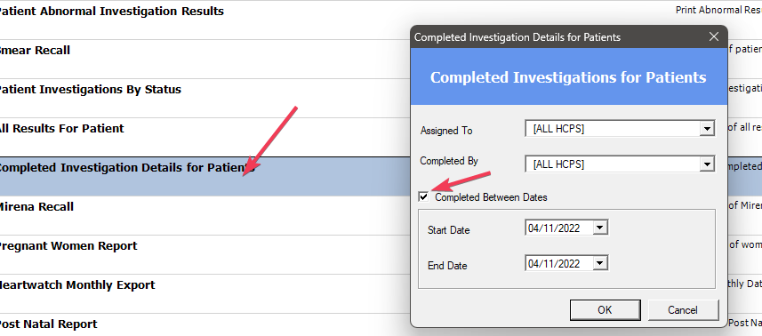 If you complete an investigation and can’t remember the name, you can use the report “completed investigations for patients” and search just on the relevant date, usually today’s date. You should be able to find the name there.