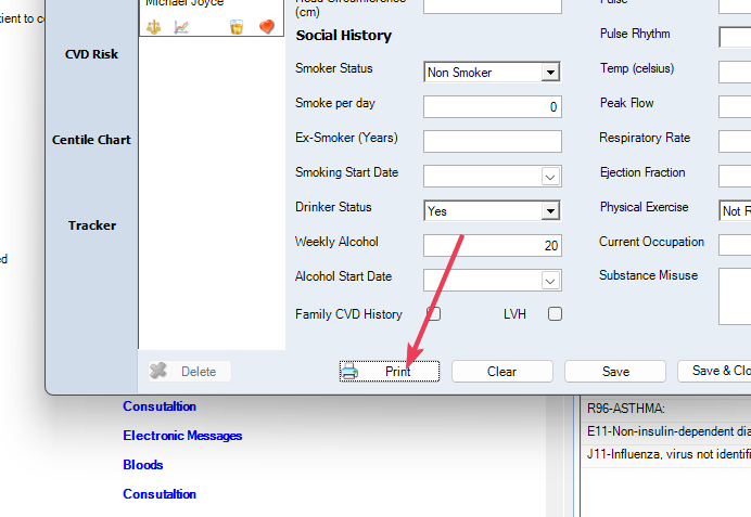 There are two options for printing baseline details. Although Socrates doesn’t make it easy, it is a good habit to get into, to put some things, especially weight and BP into base line details. When you are in the notes pressing Ctrl-B opens the base line details.