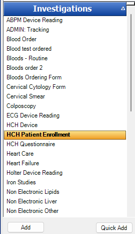 2: The second disincentive to using local investigations is that the list of available local investigations can be very long. This is particularly true for practices that previously used HPM and migrated to Socrates when the list can be hundreds long, making it very difficult to find what you are looking for.