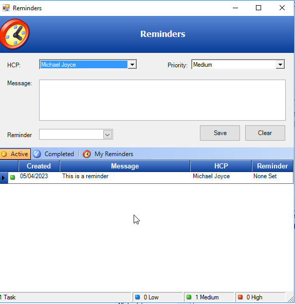 There is a report that you can use that lists out any or all reminders that have been set, it’s called “HCP Reminders for Patients”. This can be very useful, you can audit your reminders. At the time of writing this cannot be done for alerts.
