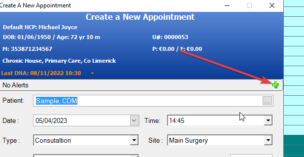 Alerts can also be added in appointments, they only open when making a future appointment.