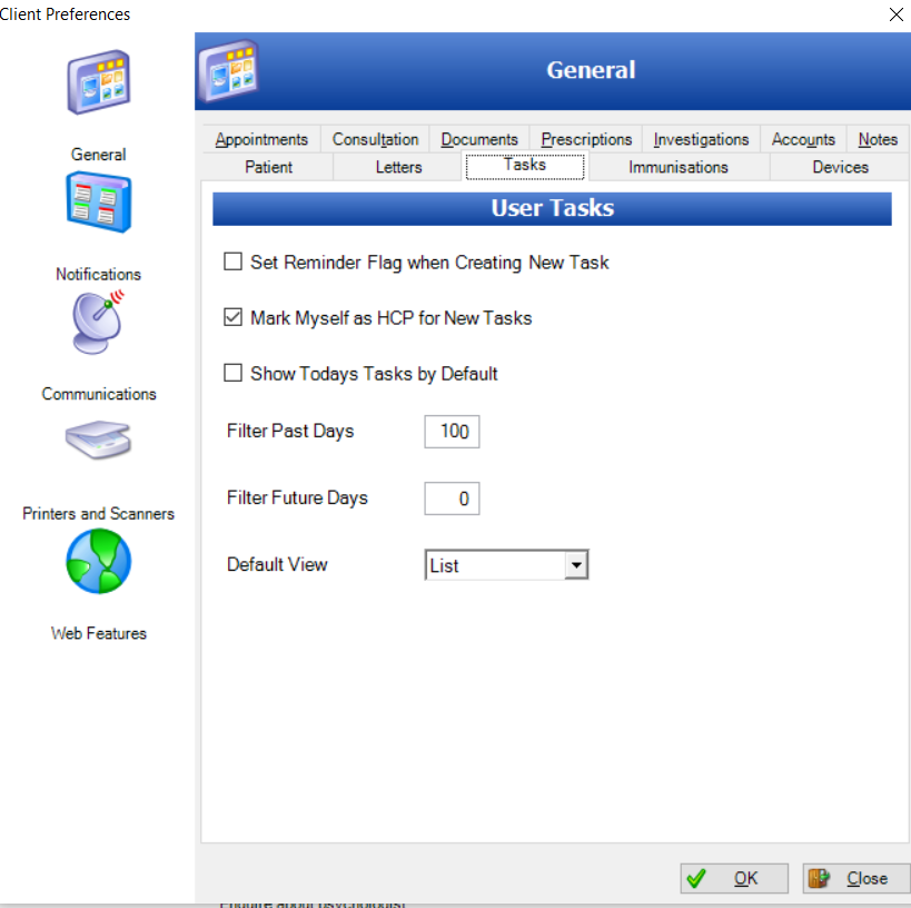 To do this you go to Edit on the menu bar and then Preferences (or Ctrl-P). In here tick on the tasks tab. You will see this dialogue.